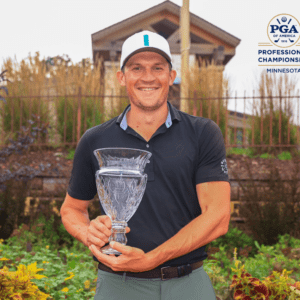 By Nick Hunter EDINA, Minn. – A day after breaking the course record at Braemar Golf Course with his 11-under 61, former University of Minnesota golfer Alex Gaugert fired a round of 64 to cruise to a seven-stroke victory at the 94th Minnesota PGA